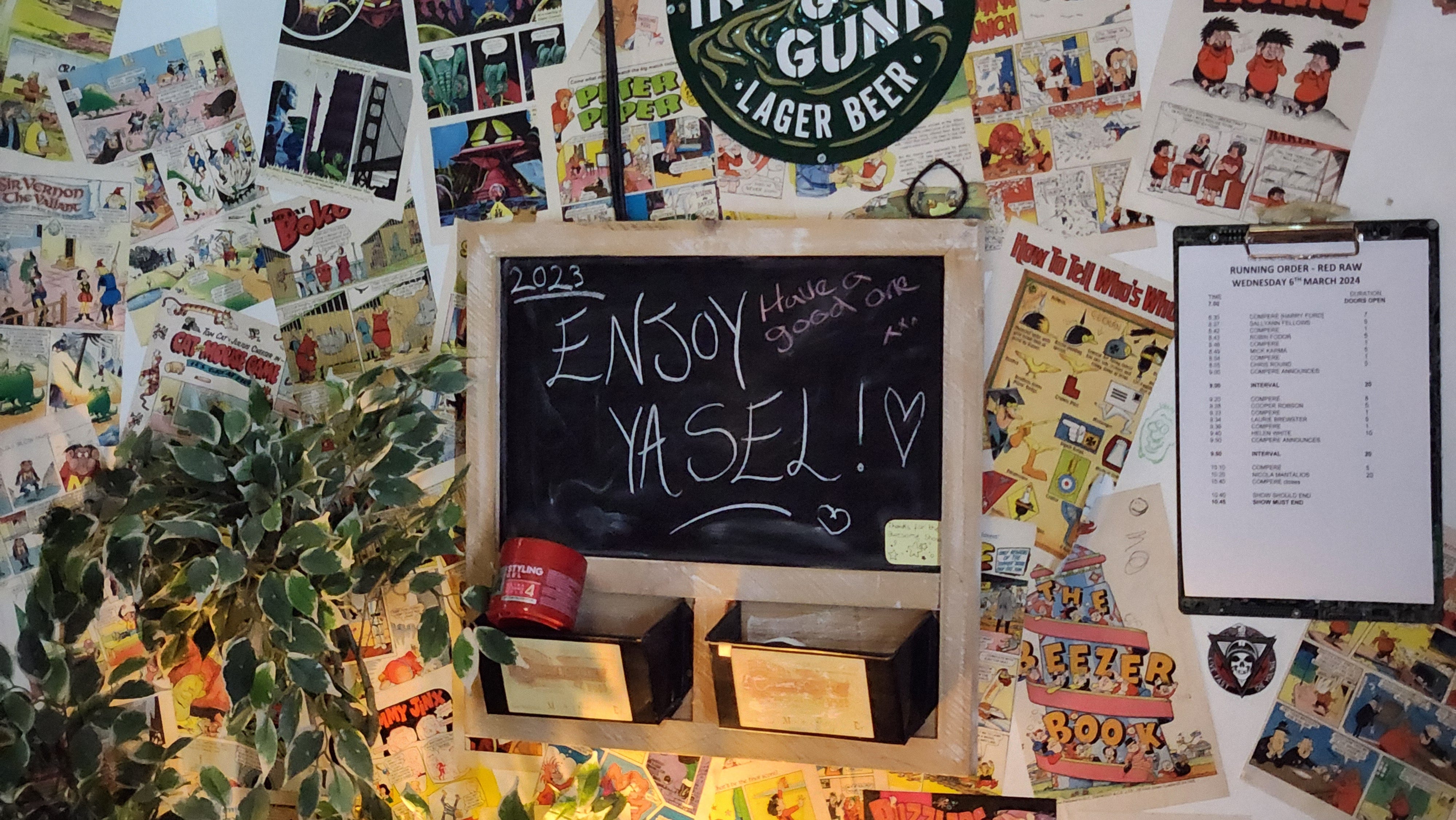 Sallyanne Fellowes was there when I arrived. She was very nice, and we chatted about where she had been recently (Edinburgh and Glasgow on the previous few evenings). My wife was in the audience and thought Sallyanne was her favourite on the night (she’s including me in that…).
